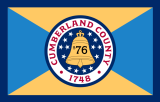 Флаг был разработан Дж. Мидом Лэндисом и был принят в качестве официального знака отличия фригольдеров в 1955 году. Округ Камберленд отделился от округа Сейлем в 1748 году, что представлено красной надписью на флаге. Бежевый и небесно-голубой цвета основной части, разделенной по диагонали на четыре части, представляют цвета униформы, которую носили континентальные войска во время Войны за независимость. Эмблема колокола в центральной части темно-синего цвета является подобием собственного Колокола Свободы Камберленда. Колокол, на котором указана дата независимости, окружен 14 звездами, расположенными в случайном порядке, каждая из которых представляет собой муниципальное подразделение в округе в то время.