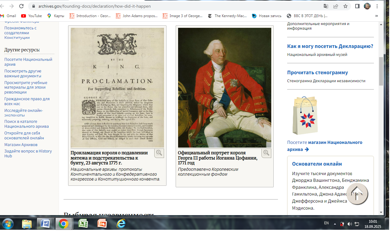 «Британия начала готовиться к войне в начале 1775 года. Первые боевые действия начались в апреле в Массачусетсе. В августе король объявил колонистов «находящимися в состоянии открытого и явного мятежа». Впервые многие колонисты серьёзно задумались о разрыве отношений с Великобританией.